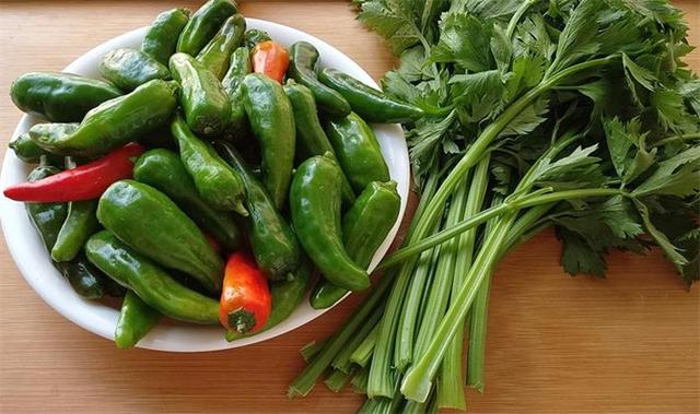 2.再準備半斤芹菜,洗凈摘掉葉子,切成小段備用,腌制這個辣椒的時候加入芹菜,腌出來的辣椒會有一種特別的香味。