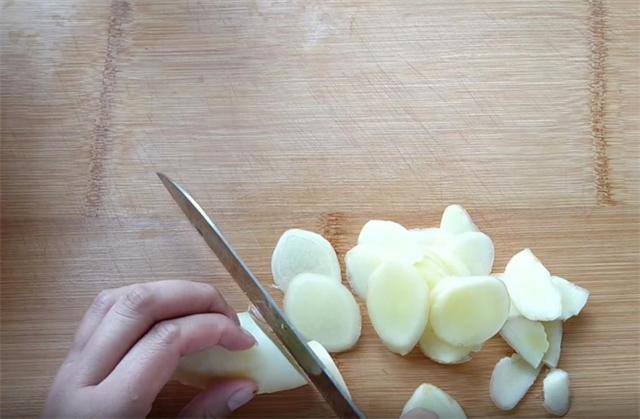 3.接下來準備生姜80克,切厚片備用,大蒜50克切片備用。