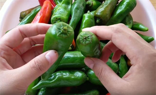 1.今天和大家分享一個東北醬辣椒的做法,口感爽脆,開胃下飯,而且醬香濃郁。這個是我婆婆從農村拿過來的,大約有四斤重,我們把它洗凈剪掉辣椒柄,因為辣椒柄腌制的時候容易腐爛。來源: www.ws46.com