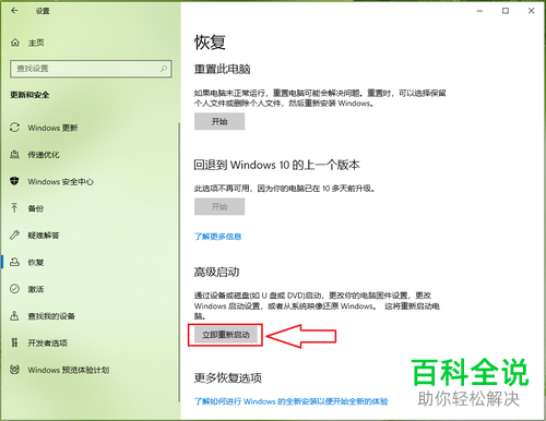4. 第四步,在右側(cè)的恢復(fù)設(shè)置頁(yè)面中,點(diǎn)擊高級(jí)啟動(dòng)分類下的立即重新啟動(dòng)按鈕。