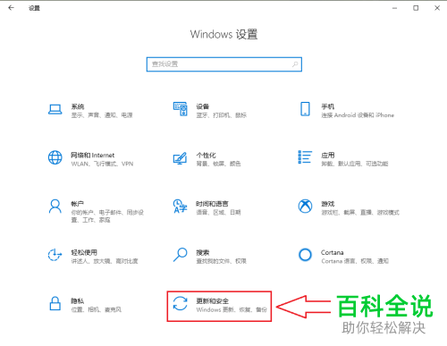 2. 第二步,調(diào)出Windows設(shè)置窗口后,點(diǎn)擊下方的更新和安全功能。
