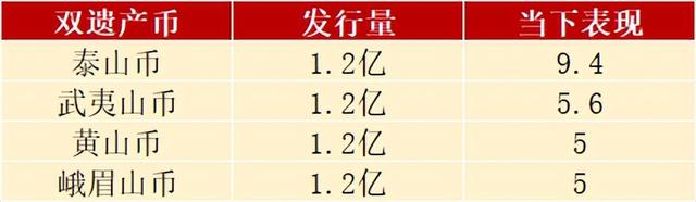 雖然黃山幣和峨眉山幣早就面值觸底,但泰山幣和武夷山幣,卻依然擁有向下的空間。從目前的表現(xiàn)來看,它們也在朝著面值前進(jìn)。 更讓人感到悲觀的是,黃山幣和峨眉山幣,同樣還剩下1200多萬套,也將開展二次預(yù)約。有這個(gè)體量在,雙遺產(chǎn)幣在短期內(nèi)是很難翻身了。
