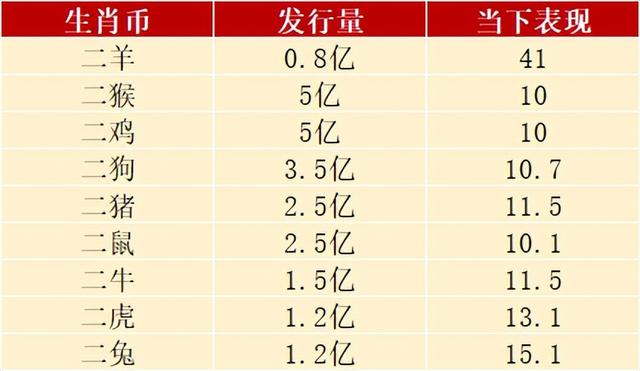 讓人沒想到的是,在今年年中,大量普通幣遇冷,它也因此成為了今年的幣王。從目前的情形來看,也很難想象后續(xù)有新幣能夠超越它。 今年的幣王,兔幣基本是坐穩(wěn)了。 目前,整卷乃至整盒的兔幣,單枚市價(jià)已經(jīng)穩(wěn)穩(wěn)達(dá)到15塊上方,并且穩(wěn)定保持了蠻長(zhǎng)一段時(shí)間。 其余第二輪生肖幣,也有不錯(cuò)的表現(xiàn),百科網(wǎng)也都給大家整理成表格了。