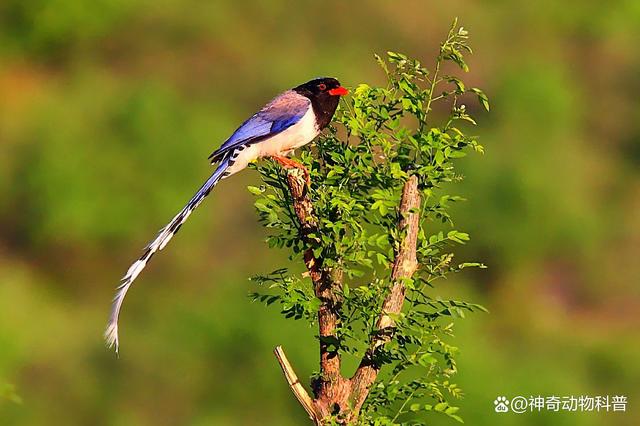 鷯哥屬于雀形目鷯哥科。它們主要分布在和中國、非洲、東南亞和澳大利亞等地區。鷯哥體型較小,平均體長為10-15厘米,重量約為10克左右。不同種類的鷯哥羽毛顏色各異,但通常都為灰色或棕色,有些種類具有黑色頭頂或背部、白色眉毛或喉嚨等特征。鷯哥具有強烈的社交性,經常成對或成群出現,它們通常棲息在樹枝上或灌木叢中,飛行輕盈敏捷。鷯哥是一種善于模仿人類語言和其他聲音的鳥類,尤其是非洲灰鷯哥是被人類馴養最久、也最受歡迎的一種寵物鷯哥。非洲灰鷯哥的智商水平相當高,它們可以學會幾百個單詞和短語,并能夠理解這些詞匯的含義并進行回應。除此之外,鷯哥也是非常聰明活潑的寵物,并且容易被馴化,因此深受人們喜愛。 5、紅嘴藍鵲(Cyanopica cyanus)