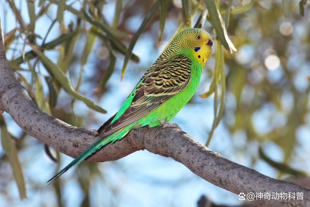八哥在我國南方的種群數量較普遍,既是重要的農林益鳥,也是頗受歡迎的籠養鳥。它能模仿其他鳥的鳴叫,也能模仿簡單的人語,在國內廣被人們籠養,八哥體型較大,身長約28至38厘米,羽毛多為黑色,嘴巴通常呈現出深褐色或黑色。八哥是一種聰明、活潑、好玩且富有個性的寵物鳥。它們具有很強的表演能力,擅長模仿人類語言、動物的聲音和各種音效。此外,八哥還具有很強的探險精神,喜歡主動研究和學習新技能。在野外它們通常成對或成群活動,具有很強的社交性。由于其美麗的外觀和活潑可愛的性格,黑八哥也被廣泛作為寵物鳥來飼養。 2、虎皮鸚鵡(Melopsittacus undulatus)
