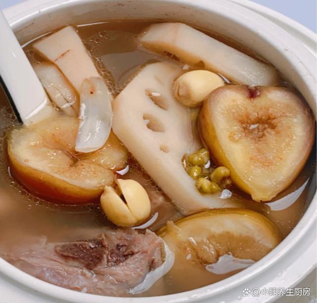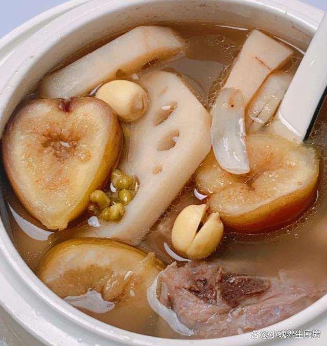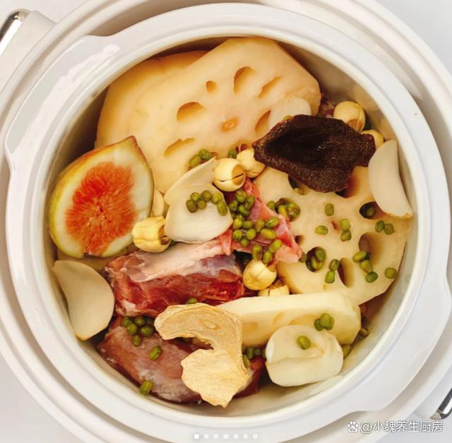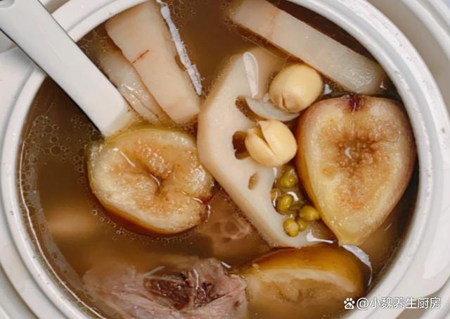 一晃眼的時間,就到了七月的中旬,明日就要正式入伏,三伏天要經歷長達40多天的高溫,潮濕悶熱的天氣,讓人非常難受,很多人都害怕出門,很容易出汗或被曬傷,皮膚干枯缺水,身體消耗很大能量,這個時候的飲食要營養搭配,注意適當食補,建議要多喝一些鮮美的靚湯,比如說這款無花果蓮藕綠豆燉鴨湯,鴨肉和幾種食材燉一鍋,湯品巨鮮美,滋補身體,好處多多。明日入伏,有錢沒錢,建議多喝這湯,補足營養,舒坦度過三伏天。  【無花果蓮藕綠豆燉鴨湯的詳細做法】 食材明細:選購鮮活土鴨半只(土鴨是散養的鴨子,鴨肉特別鮮嫩,是許多廣東人用來燉湯的首選,鴨湯非常溫補,健脾和胃,對身體有很多好處),鮮無花果幾個,陳皮一大塊,綠豆25克左右,干蓮子35克左右,溫水喝清水少許,百合20克左右,生姜一大塊,選購新鮮蓮藕250克(蓮藕是一種水中參,出淤泥不染,蓮藕分為白蓮藕和粉蓮藕,粉蓮藕非常清甜,粉糯可口,搭配各種食材都能煲湯),若干根香蔥,生姜半塊,料酒若干,食鹽少許,其他佐料。 詳細制作過程: 第一步:提前準備好無花果,蓮藕,綠豆和豬骨等食材,先把無花果放在容器里,撒上一些食鹽,反復搓洗干凈,將無花果清洗干凈,切成兩半備用。第二步:把蓮藕外皮的泥土洗凈,切掉藕節洗凈去皮,切成厚一些的片狀或塊狀,用鹽水浸泡一會兒,最后控干表面水分。 第三步:干蓮子放在器皿里,加上適量溫水泡發半個小時,去除里面的蓮子心,干百合也用溫水泡發一會兒,去掉一層薄膜,放在一邊備用。 第四步:陳皮提前泡發好,洗凈備用,綠豆洗凈泡發一個小時,生姜去皮切成片狀,香蔥打成蔥結,備用。第五步:老鴨提前宰殺,去掉外面的絨毛和內臟,我們家一半鴨子用來紅燒,一半用來煲湯,鴨肉剁成若干小塊。 (www.Ws46.com) 第六步:鴨肉用鹽水浸泡,用流水沖洗干凈,鴨肉放入鍋中,放入姜片和蔥結,加上少許冷水,調入料酒去腥,把鴨肉焯燙去腥,去掉一層浮沫。 第七步:準備好煲湯的器皿,里面放入處理好的鴨肉,蓮藕,無花果,綠豆,蓮子和百合,加上溫開水足量,調到大火燉煮,中途撇去一層浮沫。第八步:繼續小火煲80分鐘左右,讓鴨肉燉煮至熟透,湯汁也慢慢變色,調入一些食鹽和胡椒粉來調味,燜煮一會兒即可,出鍋開吃,這道無花果蓮藕綠豆鴨湯就烹飪完成了。 無花果蓮藕綠豆鴨湯是一款廣東人愛喝的靚湯,選用綠豆,無花果,蓮藕和鴨肉燉煮而成,幾種食材燉一鍋,鴨肉特別鮮嫩,湯品鮮美倍增,喝起來很舒服,預防上火,補充能量,早食早受益。 網友們,你們是否掌握這款無花果蓮藕綠豆豬骨湯的制作技巧呢?(本文的配圖全部出自網絡)