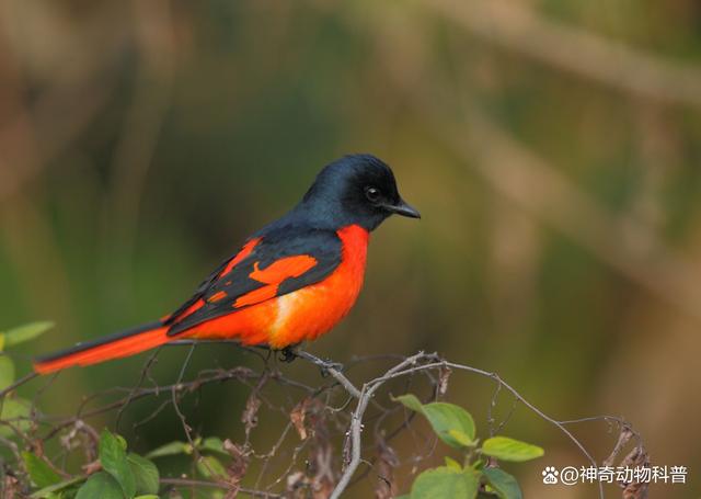 赤紅山椒鳥俗名紅十字鳥、朱紅山椒鳥。雄鳥紅色,雌鳥黃色。雄鳥胸腹、腰羽、翼斑及兩側(cè)尾羽紅色,其余藍黑色,翼斑呈“刁”形;雄鳥的紅色部分在雌鳥身上表現(xiàn)為黃色,頭頂至上背灰色,前額臉頰橙黃色。翼斑可與其他山椒鳥相區(qū)別。虹膜黑褐色,喙黑色,腳黑色。我國分布于西藏東南、云南、貴州、湖南、廣西、廣東、福建以及海南島。多棲息于中低海拔的丘陵和平原地帶的闊葉林、雨林以及季雨林中,也見于針闊混交林、針葉林以及灌叢中。非繁殖季常集群活動于樹冠層。 4、朱鸝