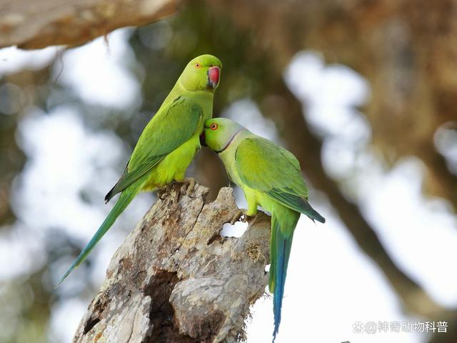 紅領綠鸚鵡(學名:Psittacula krameri),又稱為亞洲綠鸚鵡,是一種常見于南亞、東南亞和中國南部等地區的中等體型鸚鵡。紅領綠鸚鵡的體長約為40厘米左右,體重約為150克。它們的羽毛以綠色為主色調,翼上有紅色斑塊和黑色斑點,頸部呈現出明顯的紅色頸圈。雄鳥和雌鳥在外觀上非常相似,但是雄鳥的顏色比雌鳥更加鮮艷。紅領綠鸚鵡主要棲息在森林、丘陵和人類居住區域附近的樹木中。它們喜歡在樹上筑巢并繁殖后代,食物方面則以水果、種子和花蜜為主,有時也會吃昆蟲和其他小動物。紅領綠鸚鵡具有較高的智商和長壽的特點,非常適合作為寵物鳥。在文化上,紅領綠鸚鵡也有著重要的象征意義,是印度教中的圣鳥之一。總之,紅領綠鸚鵡是一種美麗而有趣的鳥類,深受人們喜愛和保護。 4、擬啄木鳥(www.ws46.Com)