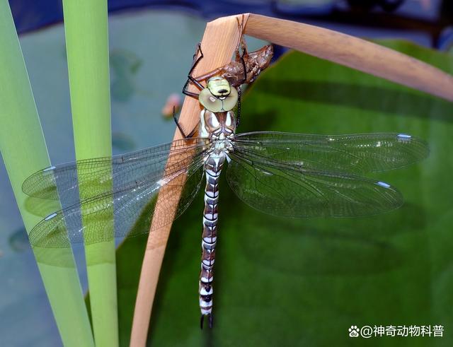 草蛉在春季或夏季開始鳴叫,發(fā)出類似于“咯咯咯”聲的鳴聲,這種聲音是由雄性草蛉用胸部筋肉震動產生的。草蛉的鳴叫聲在自然界中具有重要的意義,它們可以通過鳴叫聲來吸引異性,同時也可以嚇跑天敵,起到自我保護的作用。總之,草蛉雖然看起來可能不太引人注目,但在自然界中發(fā)揮著重要的角色,對于人類和其他生物都具有一定的意義。 10、蜻蜓 蜻蜓是一種常見的昆蟲,屬于雙翅目蜻蜓科。它們的身體修長而柔軟,通常呈現(xiàn)出鮮艷的顏色和透明的翅膀,在陽光下飛舞時非常美麗。蜻蜓主要以吃其他昆蟲為食,例如蚊子、蒼蠅、蛾子等,對于農業(yè)、園藝和林業(yè)等生產具有很好的控制害蟲作用。同時,蜻蜓在花中尋找食物時經(jīng)常進行授粉,對于植物的生長和繁殖也具有重要的作用。