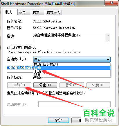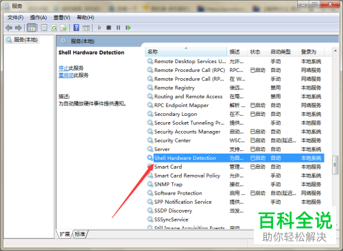 3. 然后點擊右側列表中的“Shell Hardware Detection”服務,雙擊打開屬性界面,選擇啟動類型為“自動”,再點擊下方的“應用”后,按“確定”保存