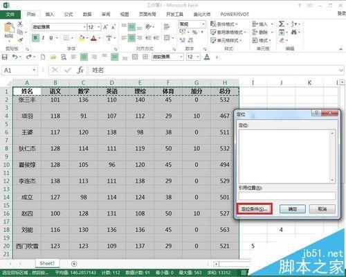 10、再選中所有記錄行,按下鍵盤(pán)上方的F5功能鍵,彈出定位對(duì)話(huà)框。點(diǎn)擊左下角的“定位條件”。