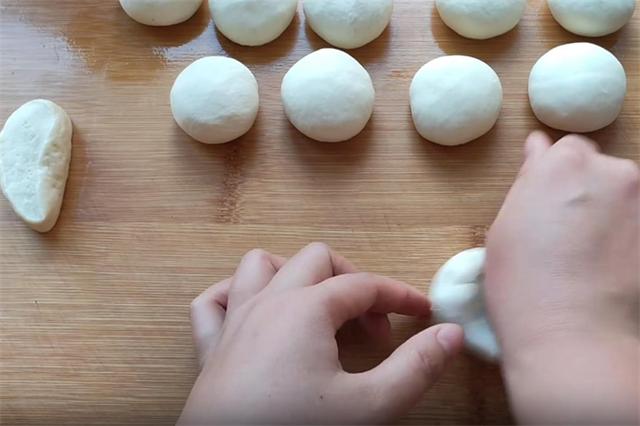 3.接下來我們像這樣向里翻轉揉搓,把它揉成表面光滑的圓面團。