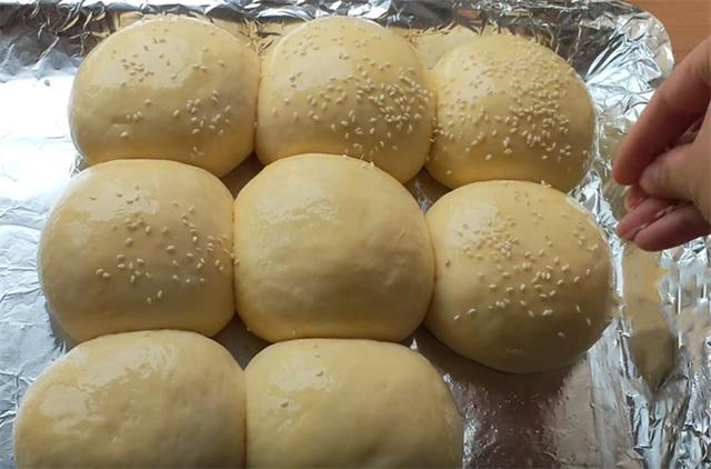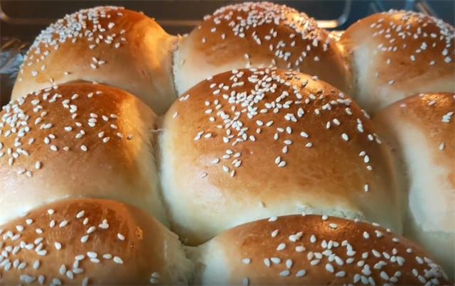 準備食材: 高筋面粉、酵母粉、白糖、溫牛奶、黃油、食用油、白芝麻、熱水 具體做法: