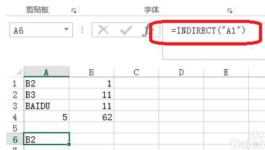 2.indirect函數的語法格式 =INDIRECT(ref_text,[a1]) indirect函數的引用的兩中形式。 一種加引號,一種不加引號。 =INDIRECT("A1")——加引號,文本引用——即引用A1單元格所在的文本(B2)。 =INDIRECT(A1)——不加引號,地址引用——因為A1的值為B2,B2又=11,所以返回。