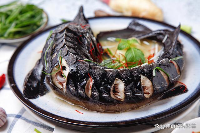 8、鱘魚(肉細味美/無刺骨頭軟,推薦:清蒸鱘魚/鱘魚頭湯) 鱘魚是一種現存起源最古老的脊椎動物之一,在中國也被譽為是最美味的淡水魚之一。尤其是人工培育的中華鱘雜交種,其肉質細膩、味道鮮美,備受食客青睞。雖然市場上出售的大部分鱘魚都是人工養殖的,但其營養價值與野生鱘魚不相上下。鱘魚肉味鮮美,無刺骨頭軟,而且魚骨骨膠原含量極高,有獨特的營養價值。 鱘魚可以用多種方式烹飪,例如清蒸、紅燒、煲湯等等。其中,清蒸鱘魚是一道以鱘魚、蔥、姜為主要材料的經典佳肴,口味咸鮮,能夠最大程度地保留鱘魚本身的鮮味和肉質的肥嫩口感。需要注意的是,過多佐料的添加反而會掩蓋鱘魚的獨特風味。同時,鱘魚也可以做成肉凍,口感非常美妙。總之,無論是食材的營養還是口感的美妙,鱘魚都是一種不可錯過的佳肴,被譽為“水中國寶”。