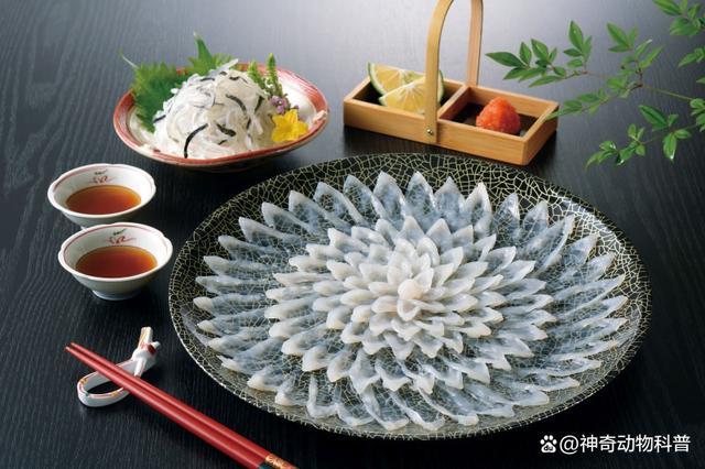 2、河豚(緊實彈韌/肉味鮮美,推薦:河豚刺身/河豚魚湯) 河豚肉是一種美味且營養豐富的淡水食用魚,被譽為“菜肴之冠”。但需要注意的是,河豚卵巢、肝臟、腎臟、眼睛和血液中含有劇毒,如果處理不當或誤食,可能會導致中毒甚至死亡。河豚肌肉發達且脂肪含量極低,這就造就了其緊實彈韌的獨特口感。同時,富含谷氨酸、甘氨酸等氨基酸,這些物質也是其鮮味的來源。在美食圈里,常有“不食河豚不知魚味,食了河豚百魚無味”的說法,可見河豚的美味程度。河豚可以生食,將其片成魚片,搭配橙醋、辣味蘿卜泥和小蔥等食用,清新鮮美,且具有彈性;河豚湯泡飯則更是令人回味無窮。