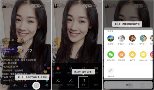 點(diǎn)擊直播頁面下方的[音樂]按鈕,即可搜索想要使用的直播背景音樂。 2、如何通知我的粉絲及好友我將開始直播? 當(dāng)您發(fā)起直播時,系統(tǒng)會自動向您的粉絲推送直播提醒; 設(shè)置直播封面時,在“輸入直播標(biāo)題”下方可選擇想要同步直播消息的方式(微信朋友圈、QQ、微博等),即可將您的開播消息分享給您的好友/粉絲; 您也可以點(diǎn)擊直播頁面下方的[……-分享],選擇想要同步直播消息的方式(微信朋友圈、QQ、微博等),就可以在開播后再通知好友/粉絲一次。 直播前通知粉絲/好友: