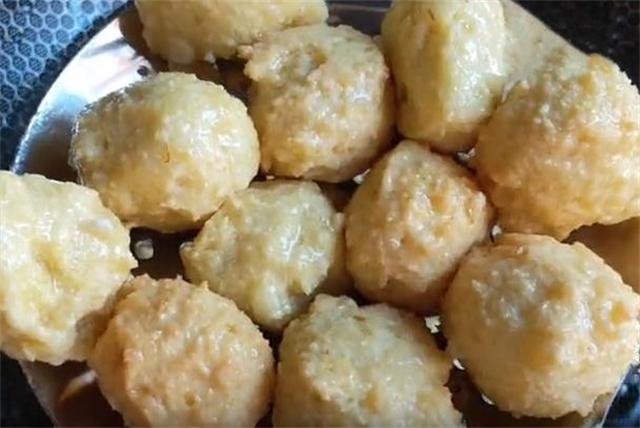3.油溫六成熱下入丸子,小火慢炸,炸至表皮微焦即可出鍋,這個時間大約3到4分鐘就可以。