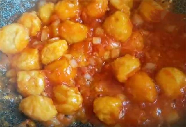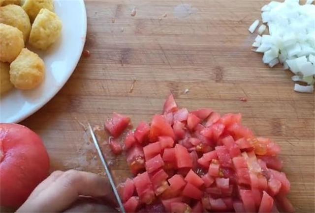 準備食材: 豆腐、西紅柿、淀粉、鹽、食用油、洋蔥、姜末、番茄醬、素蠔油、味精、蔥花 具體做法:
