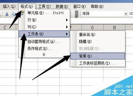 2、然后,打開excel工作表。在工作表的上方的菜單欄中順序點;格式--工作表--背景;