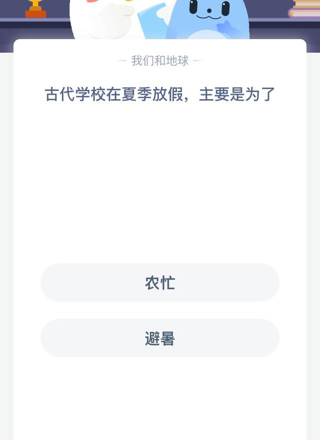 當前位置:首頁>科技>古代學校在夏季放假,主要是為了?螞蟻莊園答案