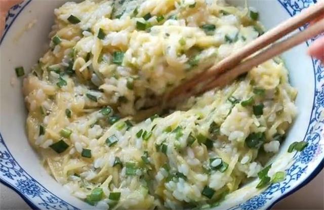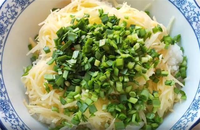 準備食材: 剩米飯、土豆、清水、韭菜、鹽、花椒粉、食用油 具體做法: