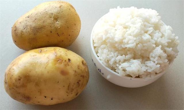 1.今天用剩米飯和土豆跟大家分享一個簡單營養又快速的早餐做法。首先我們把土豆洗凈去皮,然后碗中倒入剩米飯,加入少量清水,把土豆擦細絲或者切成小丁都可以。