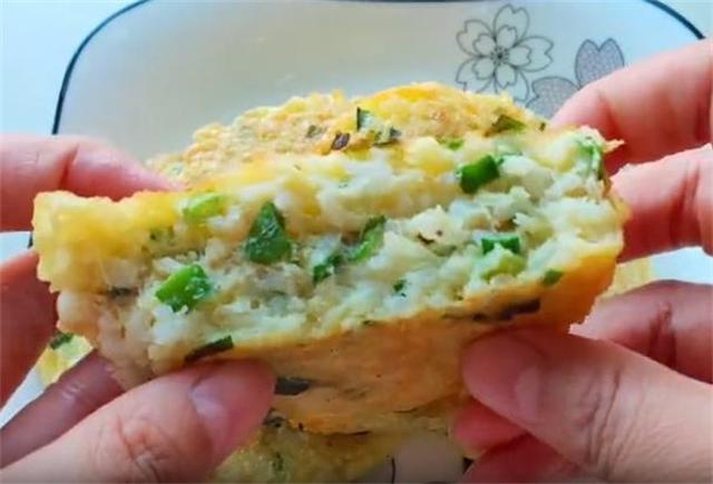 6.這樣一道營養簡單又美味的早餐就做好了,外皮微微焦酥,內里咸鮮柔軟,剩米飯這樣做真的非常好吃。 |