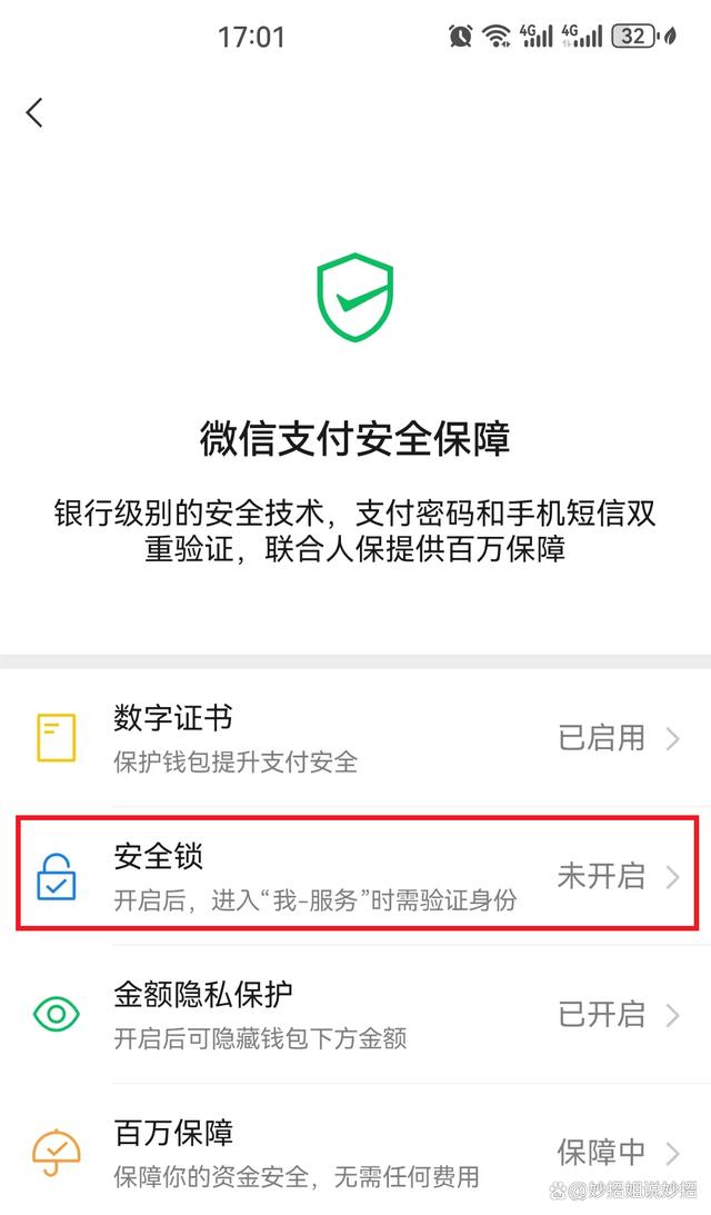 二:開啟微信支付雙層鎖。 微信支付就是平常很多朋友都在使用的一種支付方式了,在付款時我們通常就是通過掃一掃對方的收款碼,或者是出示自己的付款碼。可能掃一掃相對安全些,畢竟輸入完金額后還需要輸入密碼。但出示付款碼就簡單多了,商家拿著掃碼槍一掃,我們的錢就付過去了。要是遇到手機被他人撿到的情況下,不是輕而易舉的就能將我們的錢轉(zhuǎn)走了嗎?其實想要提高微信錢包的安全性,那么我們就可以給它“上把鎖”。 具體的操作方法:點擊微信中的服務(wù),然后再進入錢包,在錢包頁面的下方就有一個消費者保護,我們點擊進入。接著選擇安全保障,再點擊安全鎖。我們只需要根據(jù)自己的習(xí)慣選擇面容解鎖或手勢密碼解鎖就可以。當(dāng)我們按照系統(tǒng)的提示設(shè)置好后,這把“鎖”也就設(shè)置完成了。