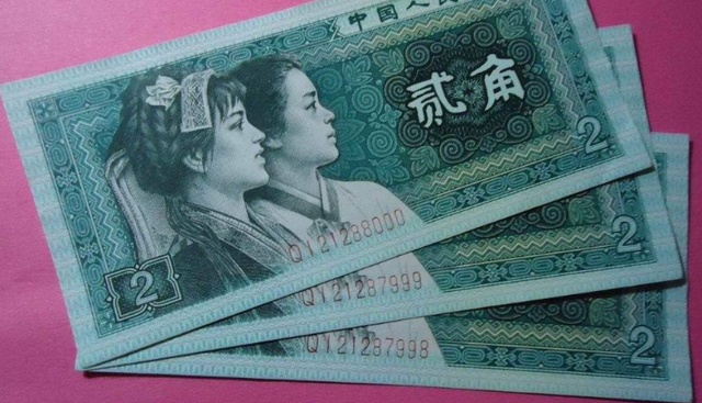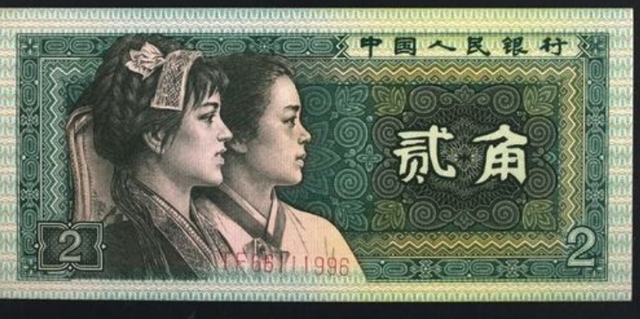 第四套中的貳角就是我們比較熟悉的人物頭像,上面有兩個少數民族姑娘的圖像,這種貳角的收藏目前來說沒有多大,但是秉著逢綠必漲的原則可能后期也有比較好的收藏空間。