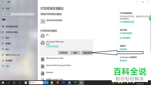 4. 如圖,在右側(cè)的頁面,可以看到兩個(gè)打印機(jī)圖標(biāo),選擇其中一個(gè),點(diǎn)擊右下角的“刪除設(shè)備”即可解決。