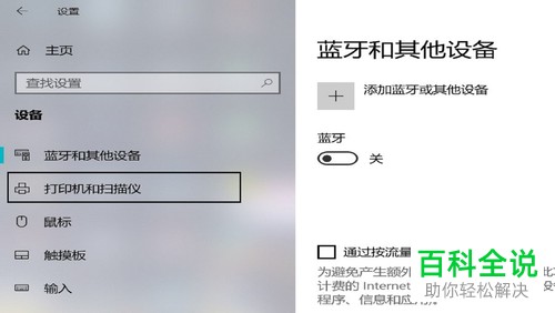 3. 在打開的設(shè)備設(shè)置頁面,點(diǎn)擊左側(cè)的“打印機(jī)和掃描儀”選項(xiàng)。