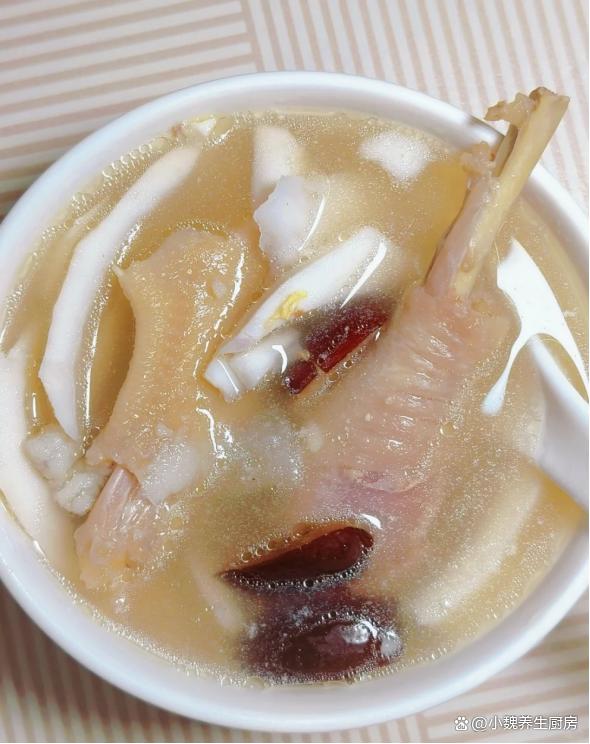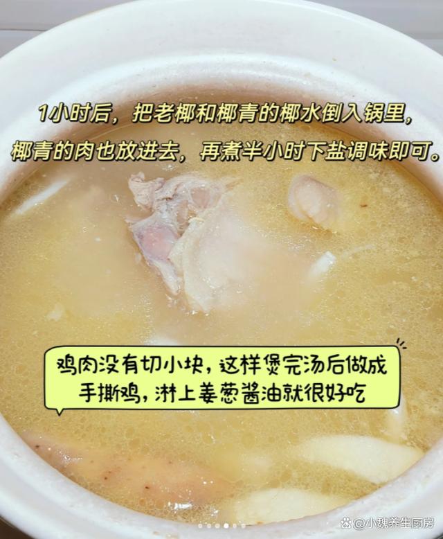 進入夏日階段,五月是入夏的開始,到了六月份才會真正熱起來,炎熱是夏天的代名詞,每年到了夏天,都非常難受,身上全身汗珠,感覺白天悶熱,晚上會睡不著,身體處于虛弱狀態,干活也沒有精神。夏天想要精神好,不僅僅要吃肉和蔬菜,還別忘記多喝湯,比如說雞湯,鴨湯等等。今天準備用土雞和幾種食材燉一鍋,它就是椰子芡實淮山藥燉雞湯,雞肉非常鮮嫩,湯品非常鮮美,別不懂吃。夏季,內行人最愛喝這湯,湯品鮮美,營養易消化,整個夏天更舒坦。  【椰子芡實淮山藥燉雞湯的制作方法】 食材清單:選購一個椰青,一個老椰,選購一只新鮮土雞(土雞是散養雞,土雞的肉質更活一些,鮮嫩美味,不管是炒著吃,還是用來煲湯也合適,但是一定要現殺現吃,不能用冷凍雞煲湯),芡實20克,干淮山25克左右,冷水和溫水少許,一根大蔥,幾根小蔥,若干個紅棗,生姜半塊,幾勺料酒,食鹽若干,胡椒粉少許,其他。 具體制作過程:步驟1:提前選購好椰子,淮山藥,芡實和老母雞等食材,先把芡實用冷水沖洗干凈,生姜去皮切成片狀,備用。 摘自: www.ws46.com 步驟2:將椰子頂部開口,倒出里面的椰汁,削掉一層外皮,椰肉切成若干長條,放在碗中備用。 步驟3:將芡實用清水洗凈,然后泡發一小會兒,干淮山用清水洗凈,紅棗洗凈去核,香蔥和大蔥切成蔥段,備用。步驟4:讓商販將活雞現殺,去掉表面的雞毛和內臟,雞頭和雞尾也不適合煲湯,取出里面的內臟,反復清洗干凈。步驟5:將土雞剁成若干小塊,雞肉用冷水漂洗,全部丟入鍋中,放入蔥段,姜片和料酒,記得一定要冷水下鍋,不能燒開水后下鍋,將雞肉焯水一會兒,去掉一層浮沫即可。 步驟6:準備好煲湯的砂鍋,加上適量清水煮開,放入淮山藥,芡實,紅棗和姜片,倒入椰肉和椰汁,記得一次性多加一些水。 步驟7:放入紅棗和雞肉,蓋上湯鍋大火轉小火燉煮,一定要掌握好火候,中途不要打開鍋蓋。 步驟8:能夠聞到雞湯的香味,雞肉也燉至軟爛,加上少許食鹽和胡椒粉,用湯勺攪動,也可以放入一些枸杞子,關火燜一會兒,出鍋開吃,這款椰子芡實淮山藥燉雞湯就可以食用了。 椰子芡實淮山藥燉雞湯是一款超級鮮美的湯品,深受南方人的喜歡,選用土雞,淮山藥,椰肉和椰汁等食材,湯品鮮美十足,甘甜滋補,補氣潤肺,清熱降火,為我們身體提供能量,早食早受益。 網友們,你們是否學會這款椰子芡實淮山藥燉雞湯的做法嗎?(文中的配圖全部出自網絡)
