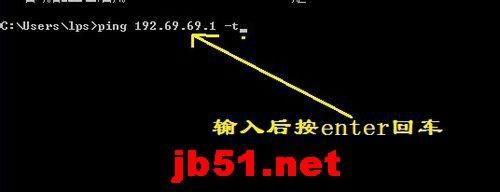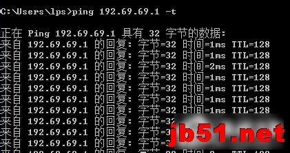 然后分別Ping一下兩個網關,例如小編這里應該是輸入Ping 192.69.69.1 -t再回車。-t的意思就是一直Ping下去。來源: www.ws46.com