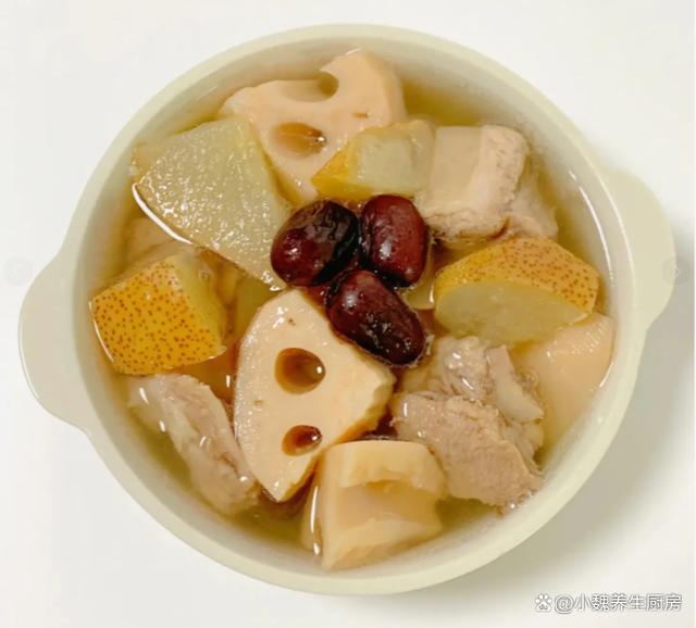 7:放入紅棗和雪梨,放入陳皮幾片,如果覺得水少了,可以適當(dāng)加水,等待食材都煮至熟透,加上少許食鹽即可,可以稍微加一下胡椒粉,出鍋開吃。 (www.ws46.com) 雪梨蓮藕紅棗排骨湯是許多南方人晚餐的標(biāo)配,選用蓮藕,雪梨,陳皮和排骨經(jīng)過燉煮而成,保留食材的營養(yǎng),湯品鮮美十足,老少皆宜,為夏天打好基礎(chǔ),迎接三伏天的到來。 網(wǎng)友們,你們喝過這款雪梨蓮藕紅棗排骨湯嗎?(上述配圖都出自網(wǎng)絡(luò))