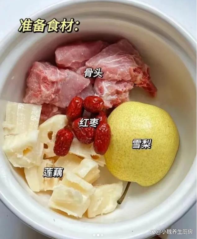 邁入5月份,我們已經(jīng)摸到了夏天,但是還沒有夏天的炎熱,很多南方人討厭夏天,因?yàn)橄奶焯鞖夂軣幔龊购芏啵?jīng)常要洗澡沖涼,加上汗液會(huì)帶走很多營養(yǎng),很多南方人苦不堪言,感覺全身都沒有勁。夏季到來之后,很多人經(jīng)常出現(xiàn)乏力和虛脫的情況,可能是沒有按時(shí)吃飯,平常要多喝各種鮮美的湯品,比如說這款雪梨蓮藕紅棗排骨湯,湯品超級(jí)鮮美,喝起來不會(huì)很油膩,讓營養(yǎng)更快被消化,早食早受益。  【雪梨蓮藕紅棗排骨湯的烹飪?cè)E竅】 挑選一些食材:選購新鮮雪梨1-2個(gè)(雪梨是日常生活非常受歡迎的水果,也可以用蘋果替代,充分發(fā)揮水果的甜度,讓湯品更加鮮美,還能起到潤燥去火,清熱止咳的消化),新鮮蓮藕幾節(jié)(蓮藕是水中人參,是湖北盛產(chǎn)的蔬菜,富含礦物質(zhì),淀粉和營養(yǎng)元素,能夠起到美容養(yǎng)顏,補(bǔ)血益氣的效果,讓肌膚更加紅潤,非常適合用來煲湯),紅棗若干個(gè),陳皮半塊,溫水和純凈水少許,新鮮排骨一斤(我們家孩子都愛吃排骨,排骨的肉質(zhì)最嫩,紅燒和煲湯都好吃,排骨湯能夠讓營養(yǎng)最大化,可以搭配各種食材燉一鍋),少許料酒,食鹽若干,胡椒粉少許,其他調(diào)味品。 正確制作順序: 1:提前準(zhǔn)備好雪梨,紅棗,陳皮,排骨和蓮藕,先把蓮藕的外皮徹底洗干凈,去掉外皮和藕節(jié),一定不要讓水灌進(jìn)去了。2:蓮藕切成若干滾刀塊,蓮藕塊用食鹽腌制,這樣藕湯不會(huì)發(fā)黑,也可以用鹽水浸泡,生姜切成若干片狀,香蔥打成一些蔥結(jié)。3:先把雪梨去掉外皮(也可以用鹽水擦洗干凈),從中間切開,挖掉雪梨核,切成大小相同的塊狀,陳皮用溫水泡發(fā)好,去掉表面臟東西,放在一邊備用。4:幾個(gè)紅棗洗干凈(也可以去掉果核,也可以切成塊),讓商販將排骨剁塊,用冷水漂洗 一會(huì)兒,記得多換幾次水,這樣排骨的血腥物質(zhì)都逼出來了。5:準(zhǔn)備好湯鍋一個(gè),鍋中放入洗凈的排骨,丟入生姜片和蔥結(jié),加上適量白酒或料酒,記得一定加冷水焯水,把排骨焯燙一會(huì)兒,去掉浮沫,用溫水沖洗干凈即可。