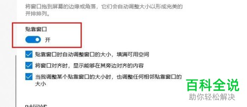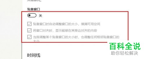 6. 第六步,在下圖所示的頁面中,可以看到貼靠窗口下面的開關變成了灰色,也成功關閉了Aero Snap功能。