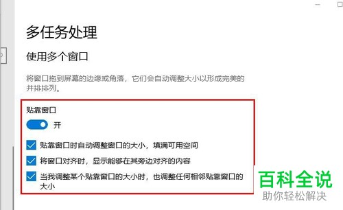 4. 第四步,我們可以看到如下圖所示的多任務處理頁面,找到貼靠窗口下面的開關。