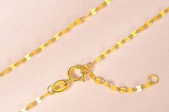 黃金扣子有s扣,s扣與m扣很像,s扣的接口一遍是焊死的一邊是活口的,具有可調節性,通過手部力量掰合開關,s扣一般多用于手鏈上,在項鏈上較為少見。s扣在佩戴的過程中要避免衣服的拉扯,以免接口被刮開使鏈條遺失。 2、M扣