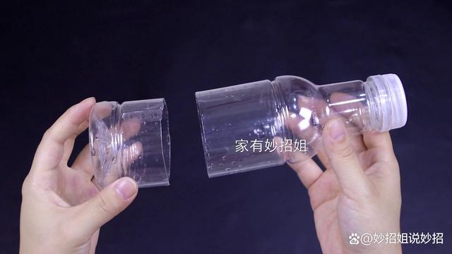 之后我們再將塑料瓶處理一下,把塑料瓶的底部裁掉一點,我們只要用到上半部分,下部分就不需要了。