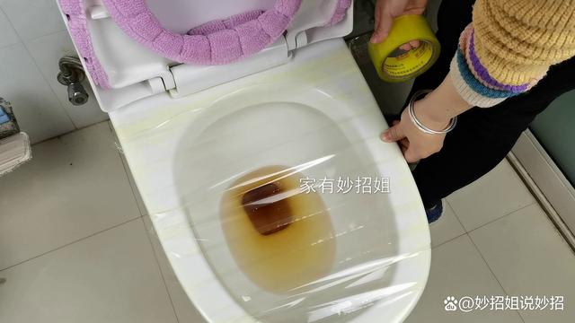 馬桶四周都擦拭好后,我們再將膠布拉長,把它沿著馬桶邊緣粘,從馬桶的這一邊粘到另一邊,就這樣一直粘,直到將整個馬桶口完全覆蓋起來。在粘的時候我們還要注意,每一段膠布要和上一段膠布重疊一部分,這樣粘好后才不會漏氣,使馬桶形成一個密閉的空間。