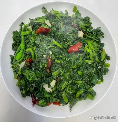 進(jìn)入5月份,現(xiàn)在正處于五一小長(zhǎng)假期間,這幾天一直在下雨,很多人都呆在家里,不用到處湊熱鬧,在家可以享受閑暇的時(shí)候,晚餐可以品嘗各種美味佳肴,比吃外賣健康,比去飯店省事。到了5月5日,就是立夏節(jié)氣,我們也快要上班了,這一天其實(shí)很重要,標(biāo)志著春去夏來(lái),炎熱的天氣要來(lái)臨了,雨水也慢慢增多了。  雨水和陽(yáng)光是滋潤(rùn)植物和莊稼生長(zhǎng)的重要因素,因此出現(xiàn)許多新鮮的綠色蔬菜,南瓜藤就是其中之一,遇見(jiàn)一定要多買一點(diǎn),可以給家里人做一做。今天分享一道南瓜藤的家常吃法——辣椒炒南瓜藤,食材非常便宜,吃起來(lái)不會(huì)膩。許多人沒(méi)有掌握這道辣椒炒南瓜藤的烹飪技巧,快一點(diǎn)跟著小編學(xué)起來(lái)吧。明日立夏,有錢沒(méi)錢,別忘記吃這菜,清腸刮油,腸道更加通暢! 【辣椒炒南瓜藤的正確做法】 準(zhǔn)備一些食材:選購(gòu)一小把南瓜藤(南瓜藤又叫南瓜尖,是南瓜生長(zhǎng)中期的嫩尖,葉子和根莖都能夠吃,葷素也可以搭配,既可以炒食,還能夠做成湯品,南瓜藤的纖維素含量高,富含大量鋅元素和維生素C,補(bǔ)充營(yíng)養(yǎng)的同時(shí),還可以加速腸道的蠕動(dòng),讓肚子瘦下來(lái)),干辣椒幾個(gè),少許食用油和豬油,少許清水,幾個(gè)大蒜頭,雞精和味精半勺,生抽和蠔油各半勺,食鹽若干,其他。 正確制作順序: 第一步:提前準(zhǔn)備好新鮮南瓜藤,大蒜頭和干辣椒,將幾瓣大蒜用刀背拍幾下,大蒜切碎成細(xì)末,干辣椒去掉蒂,切成若干小段,放在一邊備用。第二步:將南瓜藤的根部切掉,去掉一些須的部分,根莖要去掉一層毛茸茸的皮,然后將葉子和根莖分開(kāi)。第三步:準(zhǔn)備好一個(gè)大一些的容器,放入南瓜葉子和根莖,加上適量清水,加上一大勺食鹽,這樣能夠軟化毛茸茸的部分,還能將其清洗干凈,這樣吃起來(lái)更加干凈一些。第四步:控干南瓜藤表面的水分,切成若干細(xì)末,準(zhǔn)備好南瓜藤和其他配菜,開(kāi)始烹飪這道辣椒炒南瓜藤吧。 第五步:鍋底提前燒熱乎,加上食用油和豬油(豬油用來(lái)炒青菜更香一些),放入干辣椒和蒜末,快速爆炒出香味來(lái)。