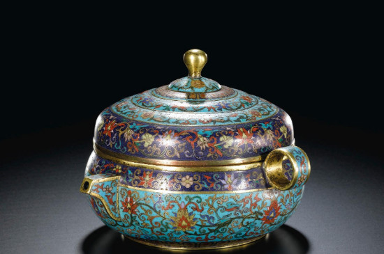明朝和清代的掐絲琺瑯器的特征也不相同,明代掐絲琺瑯器會出現斷絲的現象,有的則是一整條都裂開或從中間分裂。清代掐絲琺瑯器由于銅質較純,很少有斷絲的現象。 3、款式