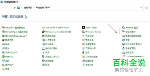 2. 在打開的控制面板頁面,找到安全和維護選項,打開。