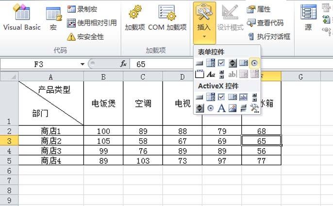 2、點擊開發工具菜單并切換到該菜單,執行-插入-表單控件命令,從下拉菜單中選擇選項按鈕控件,在sheet1中創建兩個選項按鈕控件。