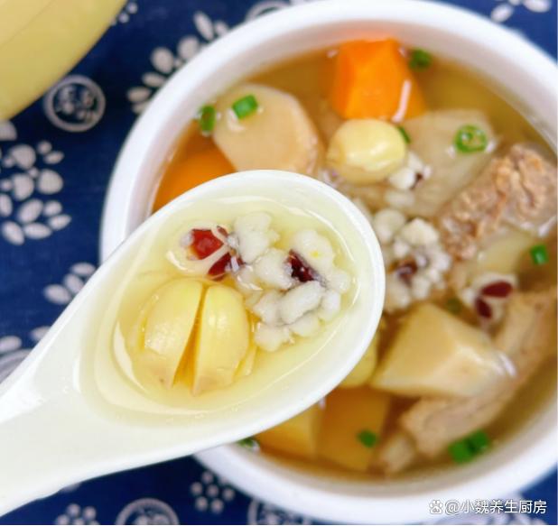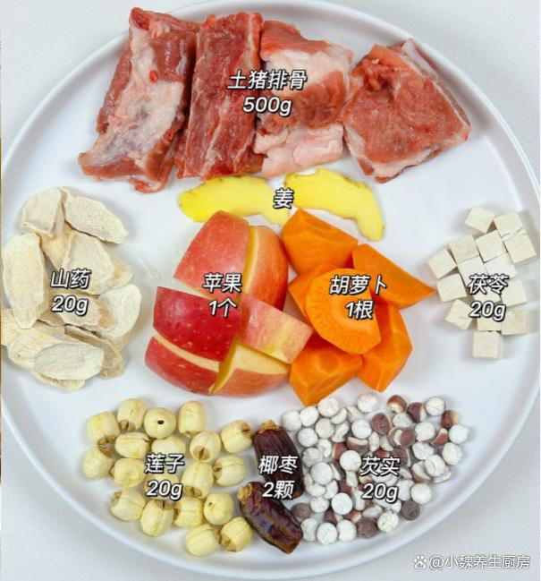 時間已經到了春季的最后時刻,夏天馬上要來到了,5月份初就會迎來入夏,這個時候天氣會更加悶熱,人的身體會非常虛弱,缺乏大量的營養。春夏交替的時候是冷熱交替的時候,這個時候要根據季節的特點,適當給身體進補,多喝一些鮮美的湯品,讓身體更加健康。今天準備用排骨,蘋果,胡蘿卜和其他食材燉煮而成,湯品超級鮮美,滋補身體,祛濕效果很不錯,學會給家里人做一做。5月將至,有錢沒錢,常給家人喝這湯,祛濕健脾,早食早受益。  【蘋果胡蘿卜芡實茯苓排骨湯的詳細做法】 選購一些食材:挑選新鮮胡蘿卜一根,新鮮紅蘋果一個(蘋果又叫),干山藥20克左右,茯苓20克左右,芡實20克,兩個椰棗,優質干蓮子20克左右,選購新鮮土豬排骨500克左右(排骨是豬身上最重要的部位,肉質要色澤紅潤,肉質要很有彈性,紅燒和清蒸不如燉湯喝,搭配各種食材都可以煲湯),冷水和溫水少許,少許料酒,生姜一大塊,大蔥半根,食鹽若干,半勺胡椒粉,其他。 正確制作順序: 第一:提前準備好蘋果,胡蘿卜,豬骨和其他食材,先把蘋果的外皮洗凈,也可以去掉果皮,從中間對半切開,去掉蘋果核切成塊,備用。 第二:生姜去皮切成片,大蔥切成小段,胡蘿卜洗凈去皮,切成一些滾刀塊,干山藥用清水沖洗干凈。 第三:將芡實和茯苓用水浸泡20分鐘,撈出備用,干蓮子提前泡發,一定要去掉蓮子心,椰棗也要清洗干凈。 第四:提前讓商販將豬骨剁成小塊,排骨用面粉揉搓,吸附掉里面的血腥物質,用清水沖洗干凈,備用。 第五:提前將湯鍋洗干凈,排骨丟入到鍋中,放入蘋果,胡蘿卜,芡實,茯苓,山藥片和椰棗,放入一些姜片和陳皮,加上適量清水,開大火將其燉煮10分鐘。 (www.ws46.com)