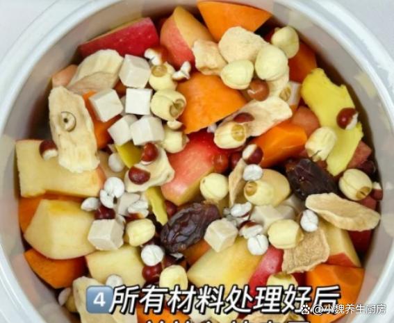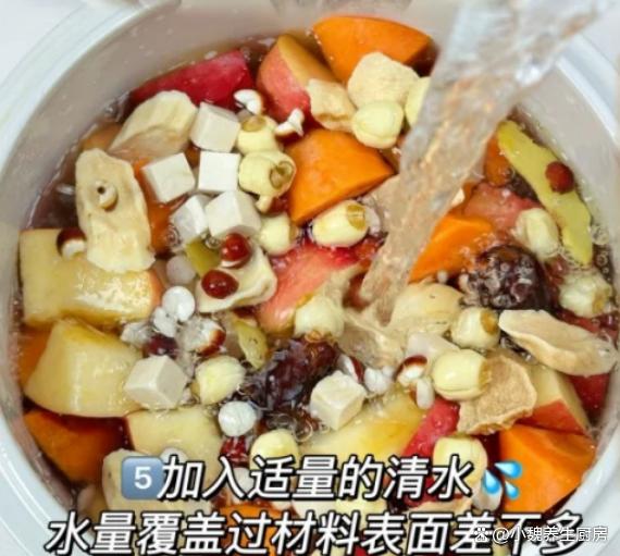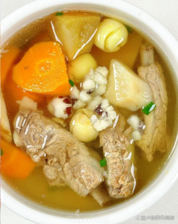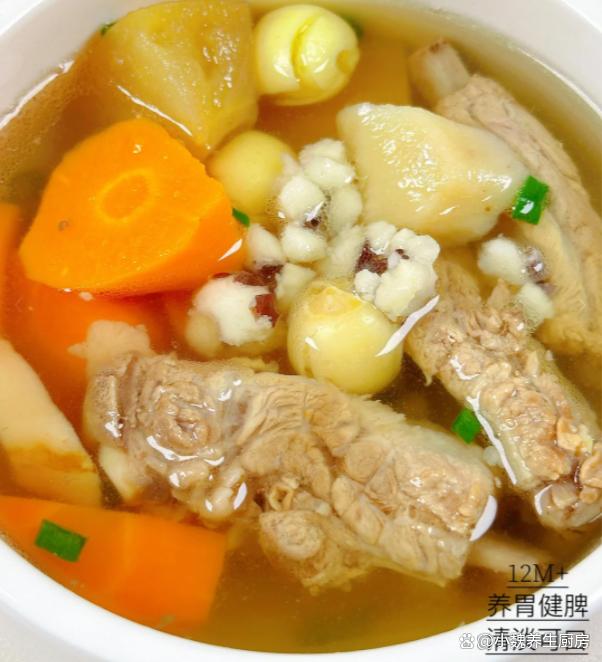 第六:轉至小火煲80分鐘,一定要掌握好火候,讓食材都燉熟了,湯汁色澤慢慢變色,加上一丟丟食鹽和胡椒粉來調味,關火出鍋食用,這款蘋果胡蘿卜芡實茯苓排骨湯就可以食用了。 蘋果胡蘿卜芡實茯苓排骨湯的制作小貼士:首先,選擇新鮮的食材是關鍵。蘋果和胡蘿卜應該挑選表皮光滑、色澤鮮艷、質地堅實的。排骨則應該選擇肉質鮮嫩、無血跡的。茯苓和芡實這兩種藥材,雖然不易變質,但也要選擇干燥、無雜質的。其次,燉煮的火候和時間要掌握得當。將排骨先焯水去腥后,與蘋果、胡蘿卜、茯苓和芡實一起放入湯鍋中,加入足夠的清水。火候要控制在中小火,避免大火導致湯汁過于渾濁。燉煮時間以1到1.5小時為宜,這樣既可以保證食材的營養充分溶解在湯中,又可以避免營養成分的流失。 此外,調味也是制作這款湯品的一大關鍵。在燉煮的最后階段,可以根據個人口味加入適量的鹽進行調味。如果喜歡的話,還可以加入一些枸杞或紅棗增加湯品的營養價值和口感。不過需要注意的是,由于茯苓本身具有一定的藥味,因此在調味時要避免過咸或過甜,以免影響湯品的整體風味。綜上所述,制作蘋果胡蘿卜芡實茯苓排骨湯需要注意食材選擇、火候掌握、調味和盛裝等多個方面。只有細心制作,才能品嘗到這款湯品帶來的美味和滋補效果。 蘋果胡蘿卜芡實茯苓排骨湯是一款家常靚湯,許多南方人愛喝,湯汁鮮美濃郁,食材的營養非常豐富,很容易消化和吸收,保護我們的雙眼,祛濕又排毒,對身體有很多益處。 網友們,你們是否掌握這款蘋果胡蘿卜芡實茯苓排骨湯的烹飪技巧呢?(文中的配圖全部來自網絡)