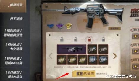 在盛夏驚雷里,用驚雷抽獎券抽取相應的獎勵,驚雷抽獎券是遞增的形式,第一關每抽獎1次需要2個驚雷抽獎券;