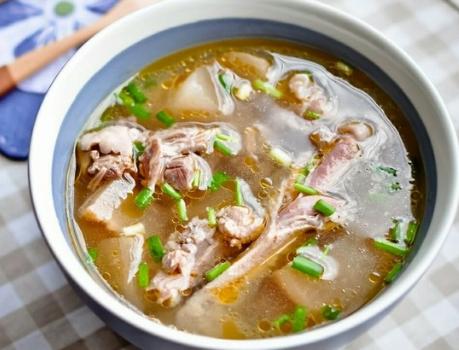 將鴨肉薄片平鋪在案板上,放上適量的胡蘿卜絲、青瓜絲和生菜葉,再刷上一層甜面醬,卷成卷狀備用。 將雞蛋打入碗中,加入適量鹽和面粉攪拌成面糊。 鍋中倒入適量食用油,燒熱后將鴨肉卷沾滿面糊放入鍋中,小火煎至兩面金黃即可出鍋。(www.ws46.com) 三、鴨肉燉湯 鴨肉燉湯是一道營(yíng)養(yǎng)豐富的湯品,口感鮮美,滋補(bǔ)養(yǎng)生。 所需材料: