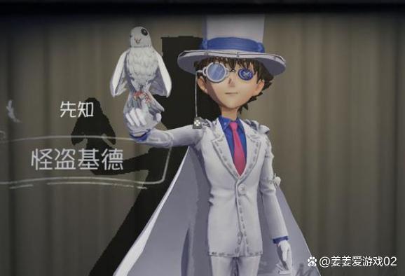 怪盜基德,游戲《第五人格》中的時裝,屬于伊萊·克拉克,時裝品質為稀世。大膽無畏又華麗無比的基德,善用精妙的魔術手法,而先知則憑借著役鳥的幫助,獲得了觀察世界的全新視角,甚至可以像施展魔法一樣預見對手的位置。